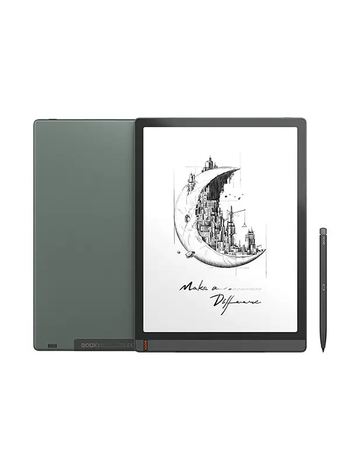 The ONYX BOOX Tab X is a 13.3-inch E-Reader with a high-performance Qualcomm hardware platform and a wide range of options for working with text. The E Ink Mobius Carta display has higher contrast, a frontlight system with color temperature control, and a flexible plastic base, which increases its reliability. The capacitive sensor allows you to work in the menu and zoom in on pages with an intuitive pinch. Its second inductive touch layer allows you to draw and take handwritten notes. A new graphics processor with BOOX Super Refresh technology provides high-speed screen refresh and smooth movement of objects on the screen. The Tab X is not only ideal for reading but is also a perfect tool for working with various types of documents. The Android 11 operating system allows you to install and use third-party applications. A built-in Wi-Fi module allows you to download e-books from the Internet and use other network services, and Bluetooth support allows you to connect external devices. 128 GB of internal memory allows you to store all the necessary e-books and documents on the device with virtually no limitations. The E Reader's body is made of a lightweight and durable aluminum-magnesium alloy, and the display is covered with an additional protective glass. A high-capacity 6300 mAh battery ensures long battery life.